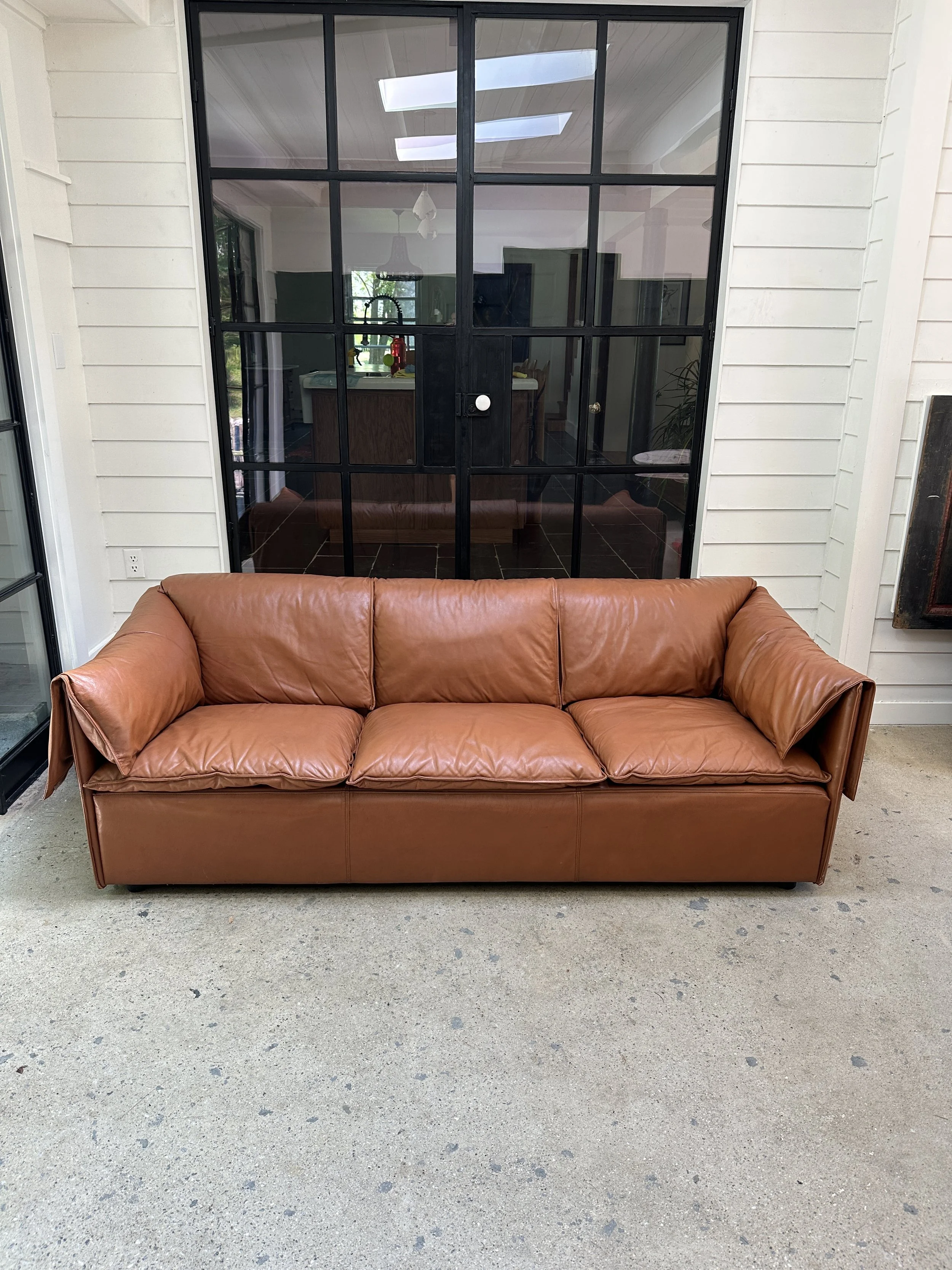 Vintage Danish three seater sofa, model 'Lotus' in thick high-quality brown leather designed by Neil Eilersen, circa 1970s.
